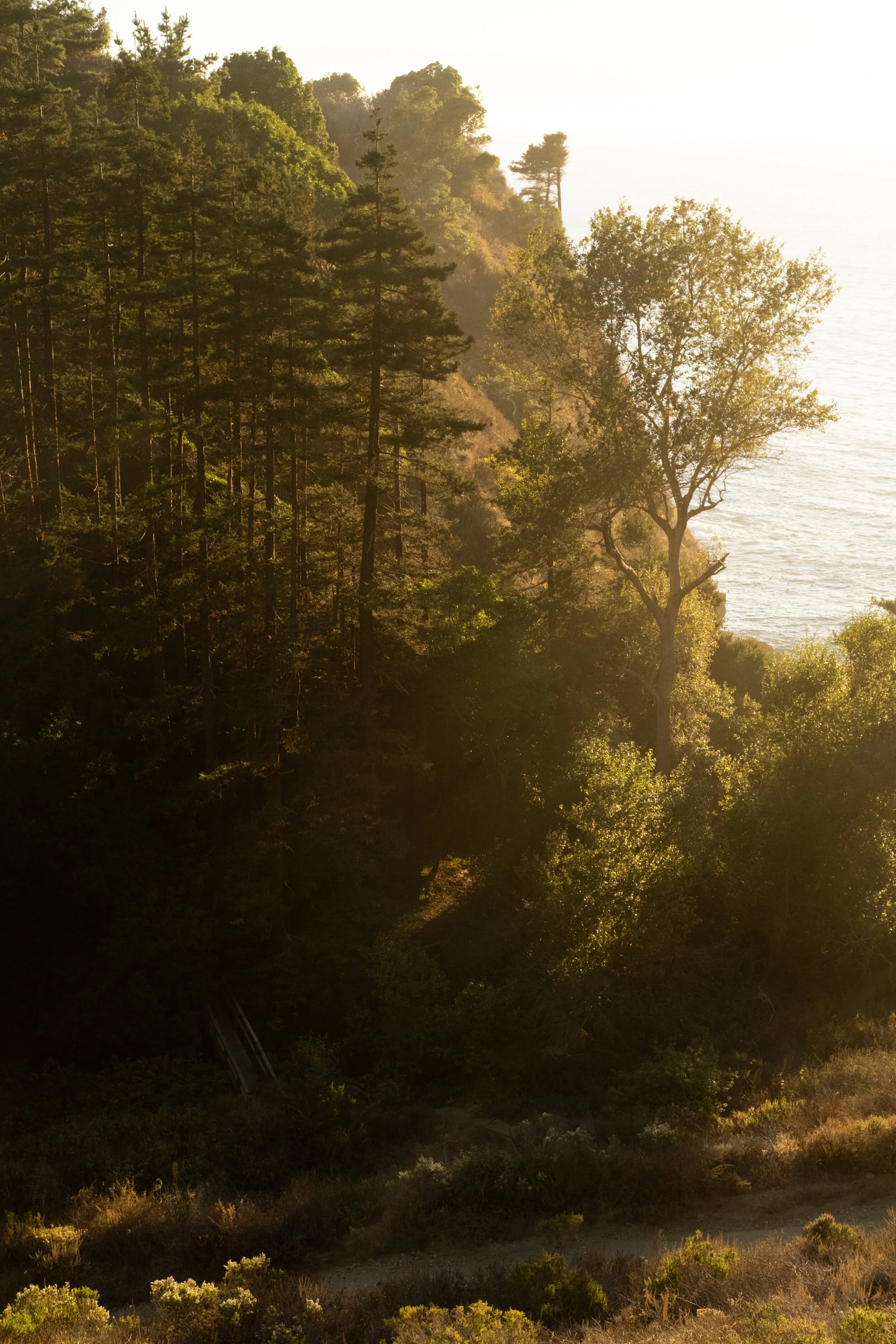 I then drove to Pfeiffer Beach, which requires driving down a narrow road—essentially a one-lane road but with two-way traffic. It ends at the entrance of the beach. I walked around and took photos, discovering a forest a little ways down the beach, inland. I walked into it for a bit and it was super enchanting with the light passing through massive trees, quiet, with no one else around. I had a moment where I gasped because of how magical it felt—the only sounds I heard were the sounds of the Pacific Ocean and of the woods, combined with the soft light spilling in.
